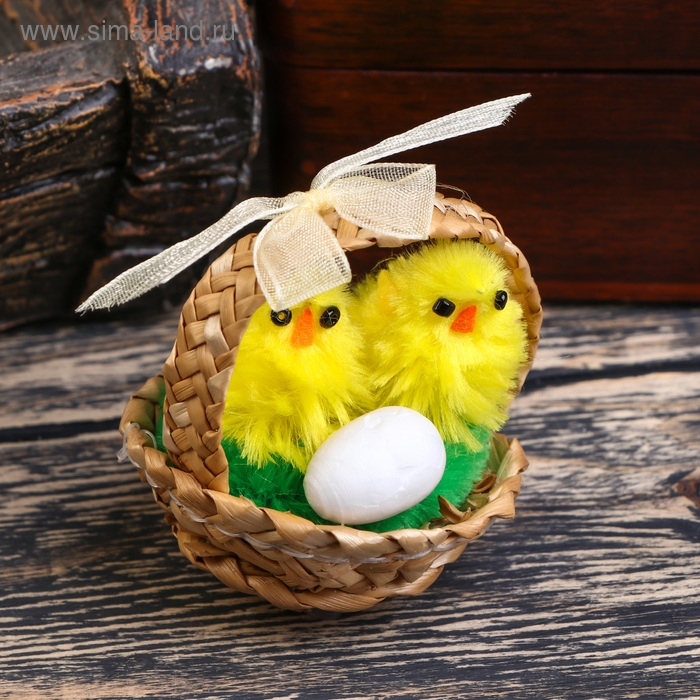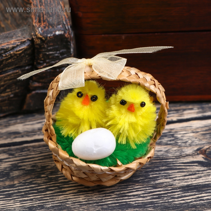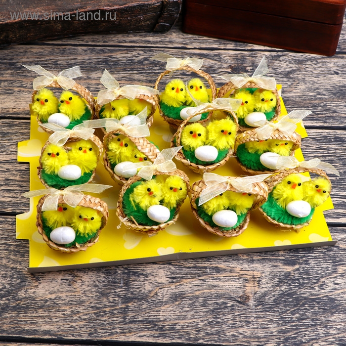 Сувенир пасхальный "Цыплята в корзинке с яичком" набор 12 шт 5х5х5 см