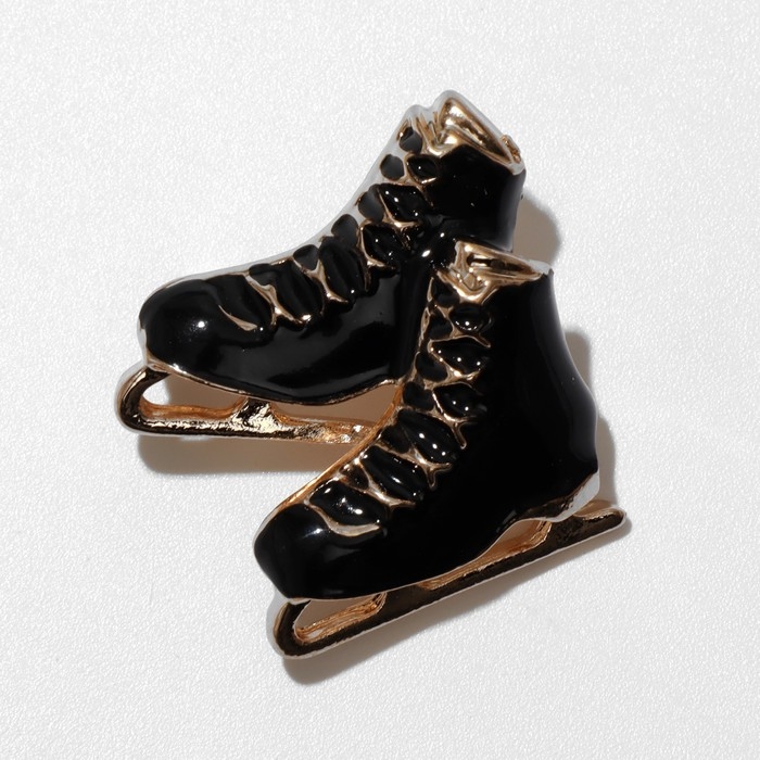 Брошь «Коньки» фигуристки, цвет чёрный в золоте