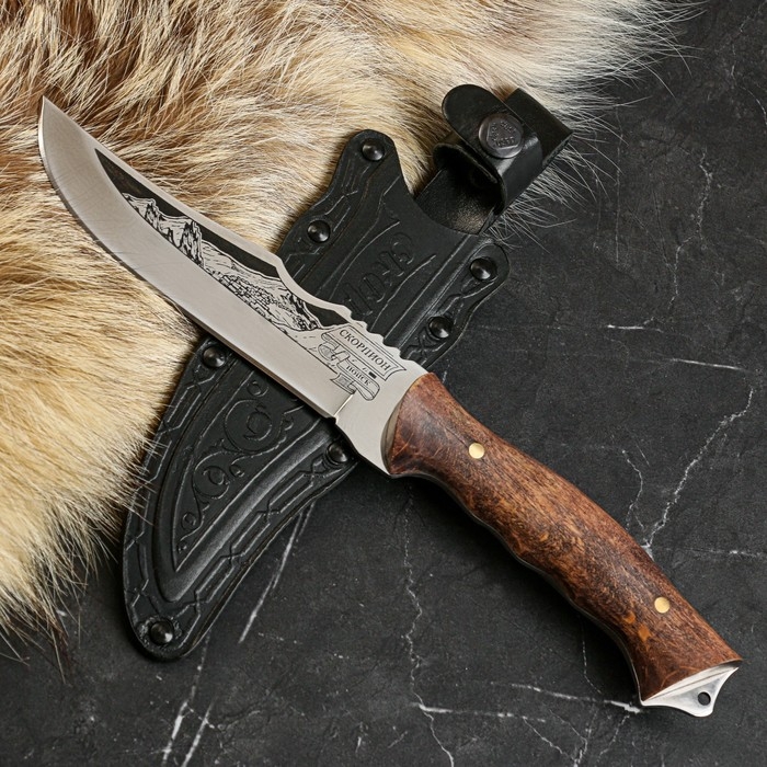 Нож кавказский, туристический "Скорпион" с ножнами, сталь - 40х13, вощеный орех, 14 см