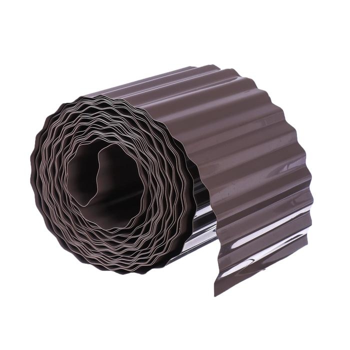 Лента бордюрная, 15 см × 9 м, толщина 0.6 мм, пластиковая, гофра, темно-коричневая, Greengo