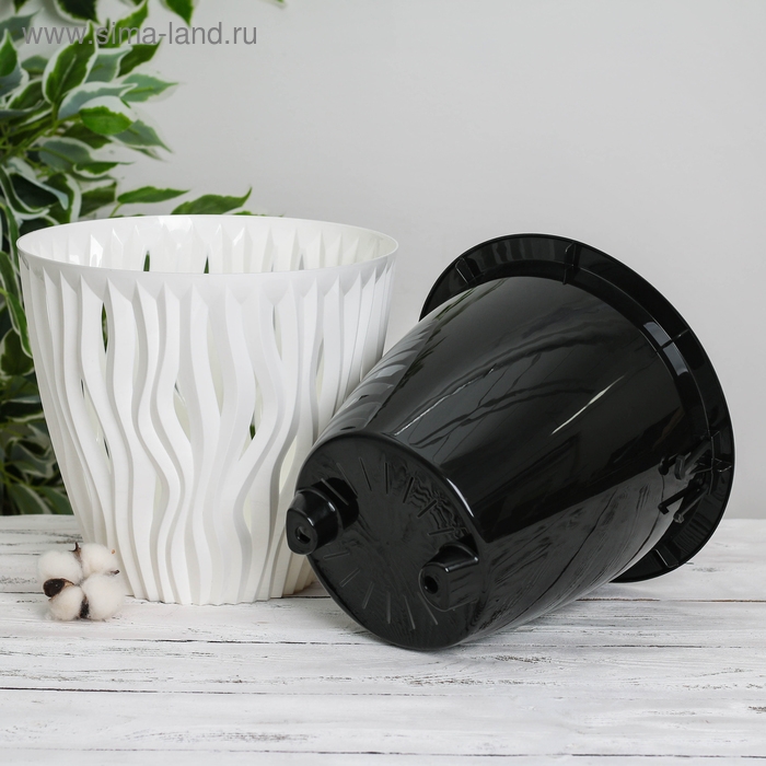 Кашпо для цветов со вставкой «Вдохновение», 5,7 л, цвет белый/чёрный