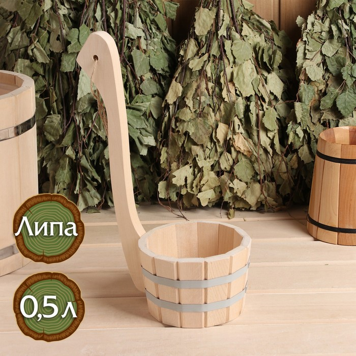 Ковш для бани из липы 0.5л, 20 см, с вертикальной ручкой