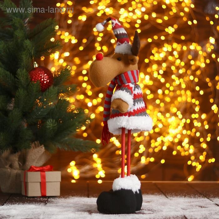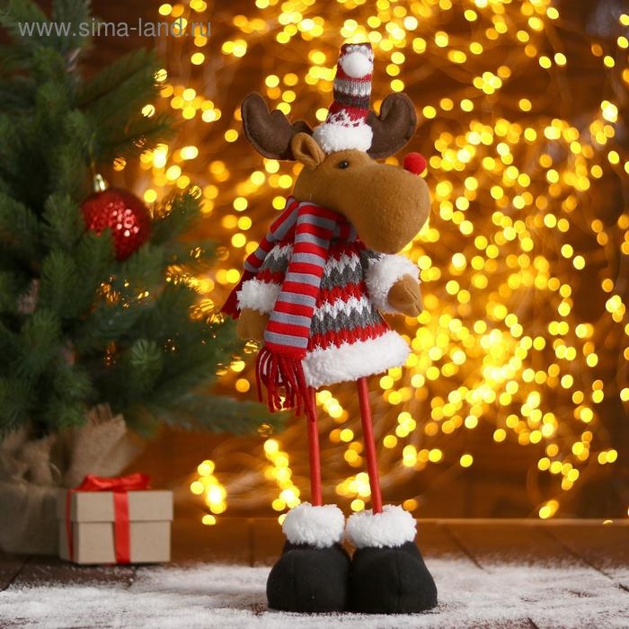 Мягкая игрушка "Олень в полосатом шарфике-длинные ножки" стоит, 11х36 см
