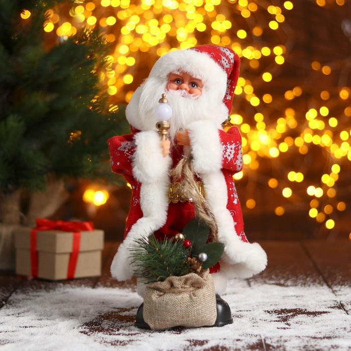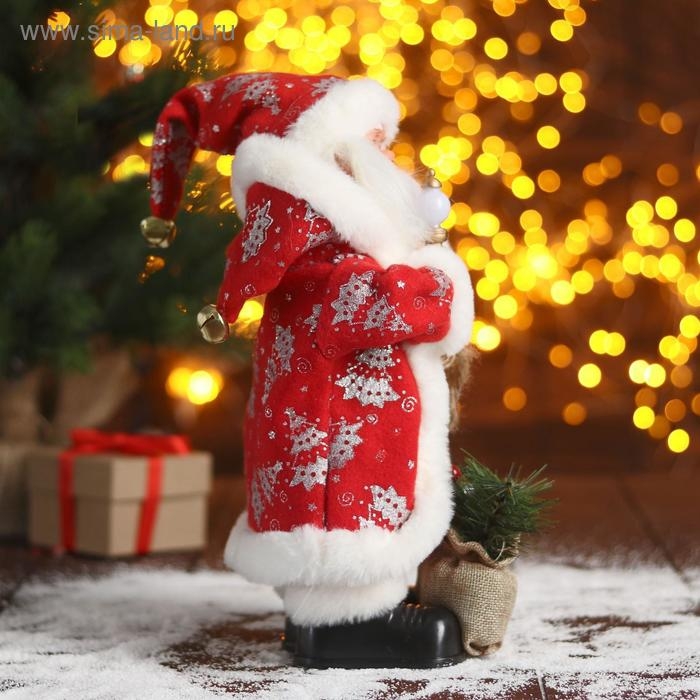 Дед Мороз "В красной шубке в ёлочках с подарками" двигается, 30 см
