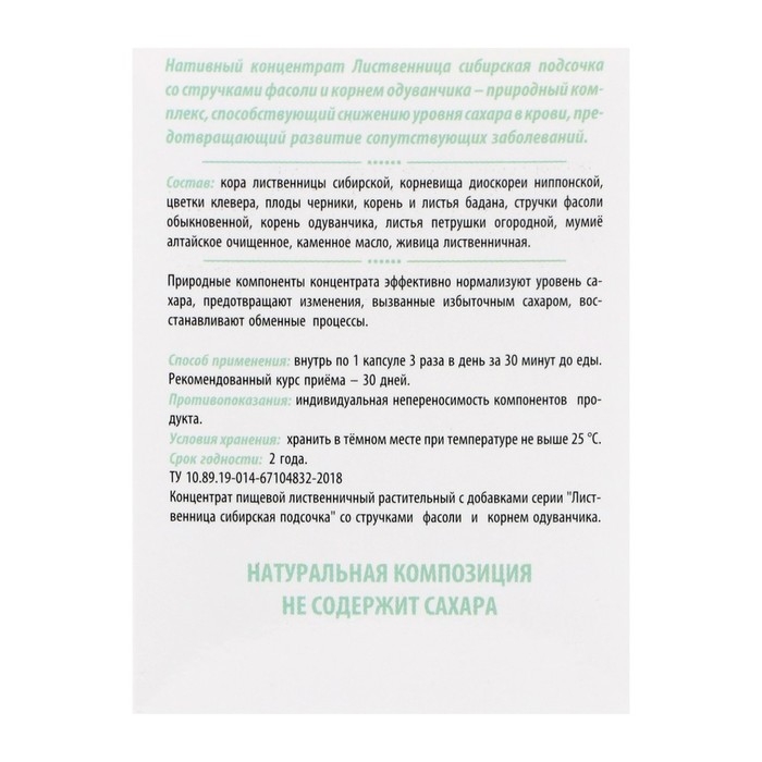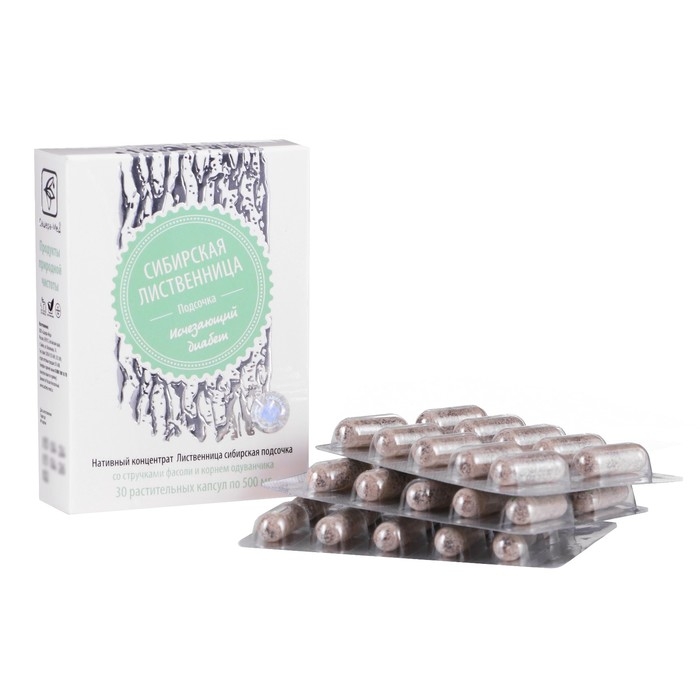 «Сибирская лиственница подсочка» с фасолью и одуванчиком, исчезающий диабет, 30 капсул по 0,5 г