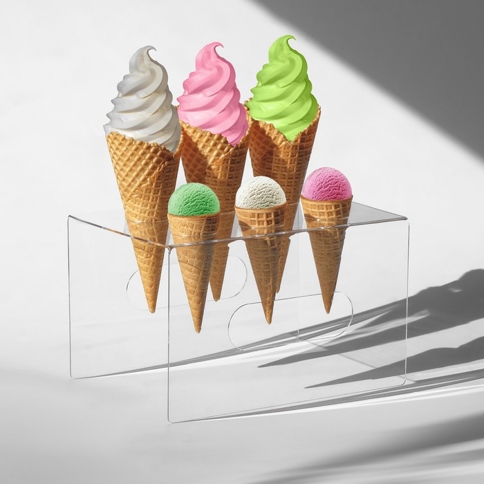 Подставка под мороженое 25×18×15, оргстекло 2 мм, d=4 см, цвет прозрачный, В ЗАЩИТНОЙ ПЛЁНКЕ