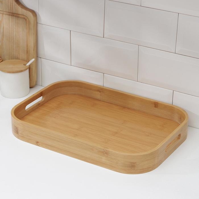 Поднос с ручками Доляна Striata, 40×28×4,5 см, бамбук