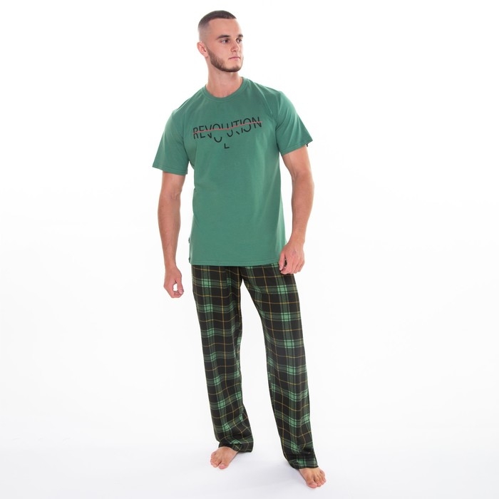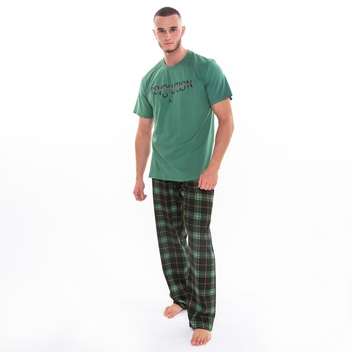 Комплект (футболка/брюки) мужской, цвет зеленый/клетка, размер 54