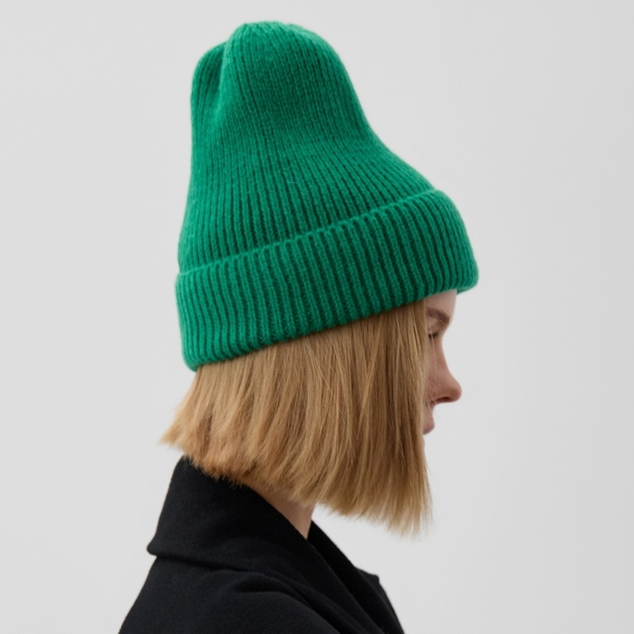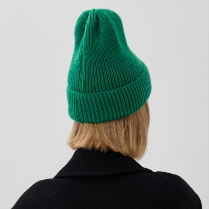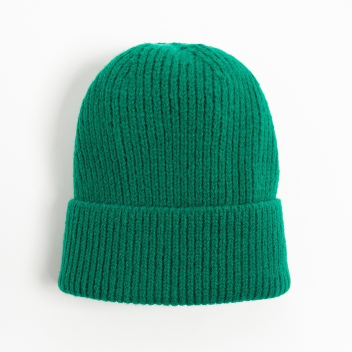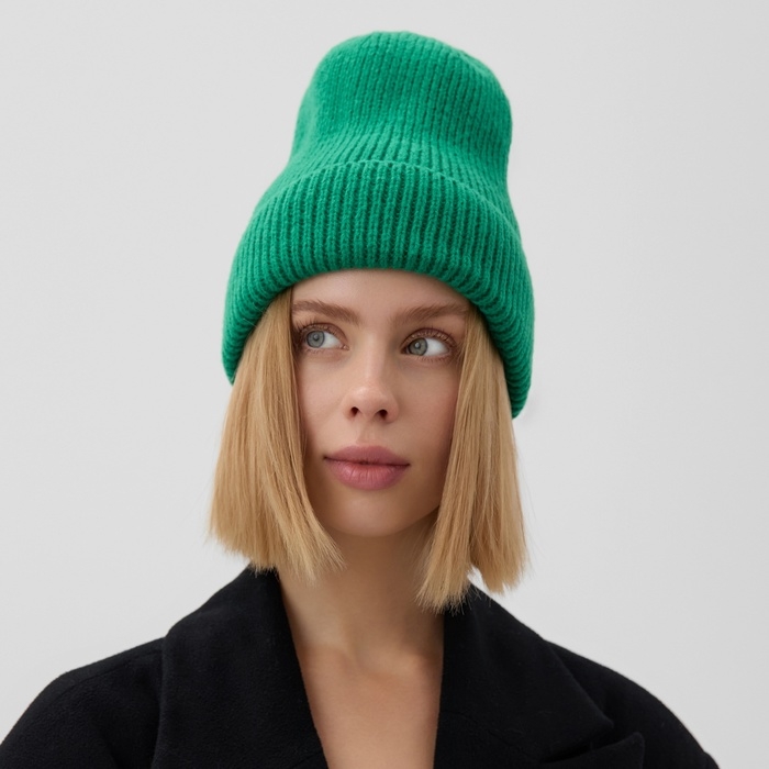 Шапка женская MINAKU с отворотом, размер 54-56, цвет зелёный