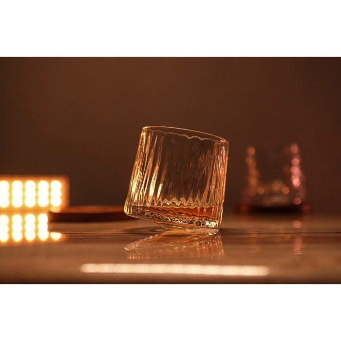Стакан на подставке «Торн» прекрасно подойдёт для алкогольных напитков. Форма дна бокала разработана и произведена таким образом, что позволяет ему вращаться на любой твёрдой ровной поверхности.