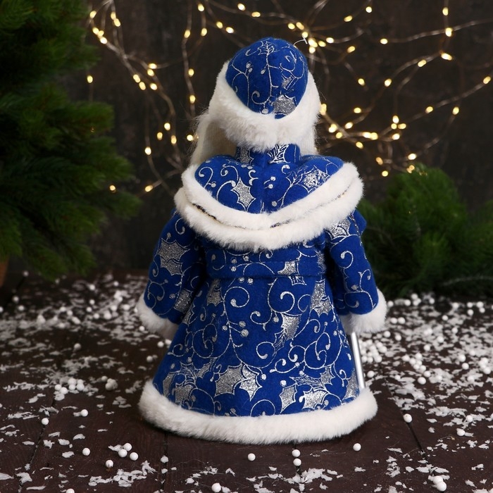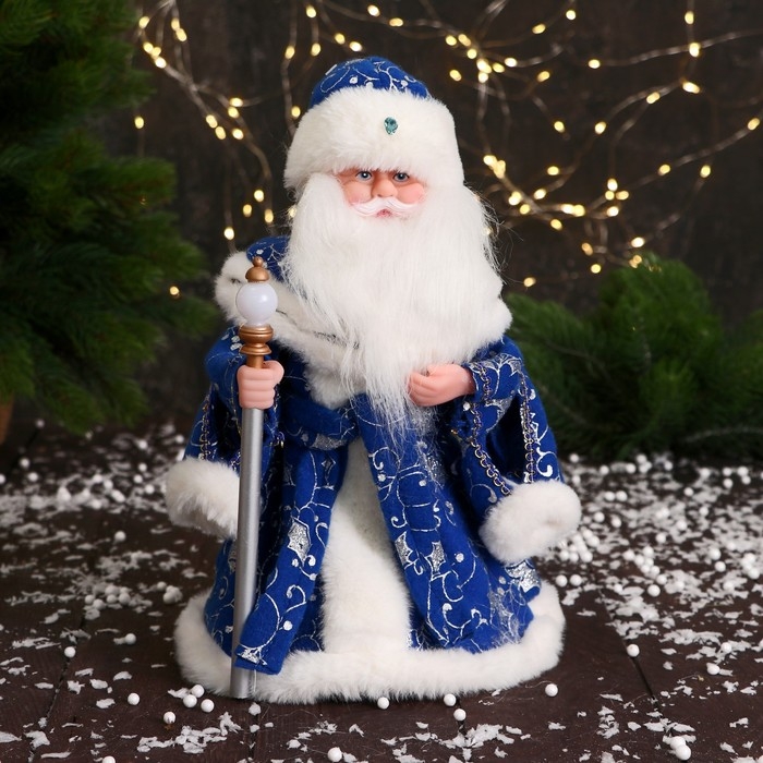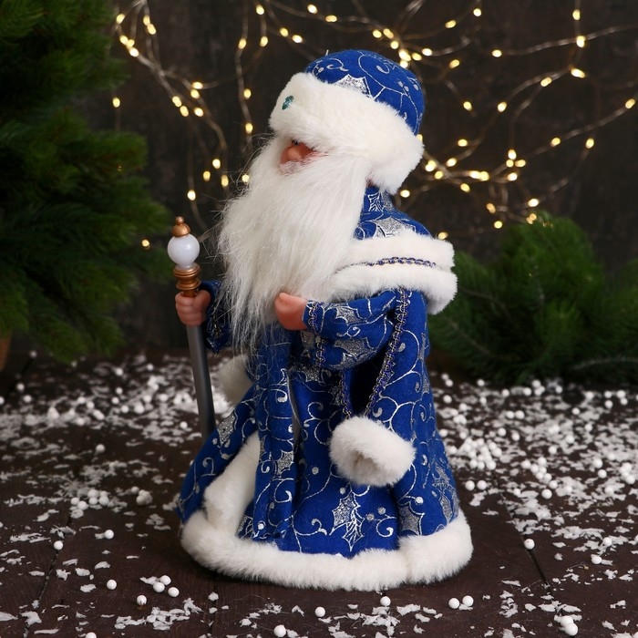 Дед Мороз "В шубке с откидными рукавами и посохом" 30 см, двигается, синий