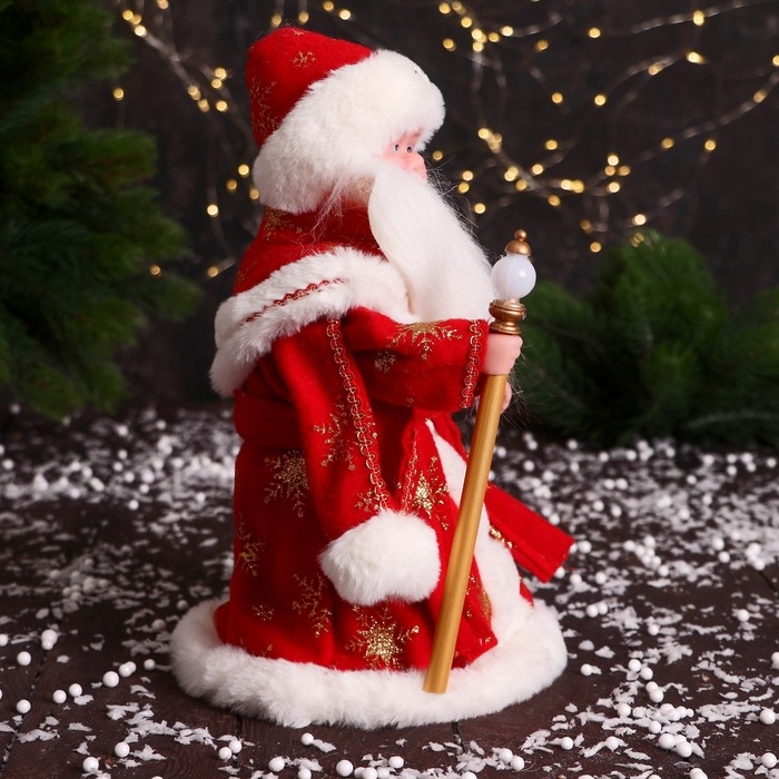 Дед Мороз "В шубке с откидными рукавами и посохом" 30 см, двигается, красный