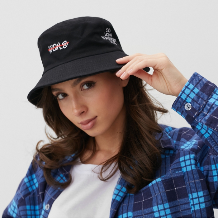Панама MINAKU с надписью, цвет чёрный, размер 56-58