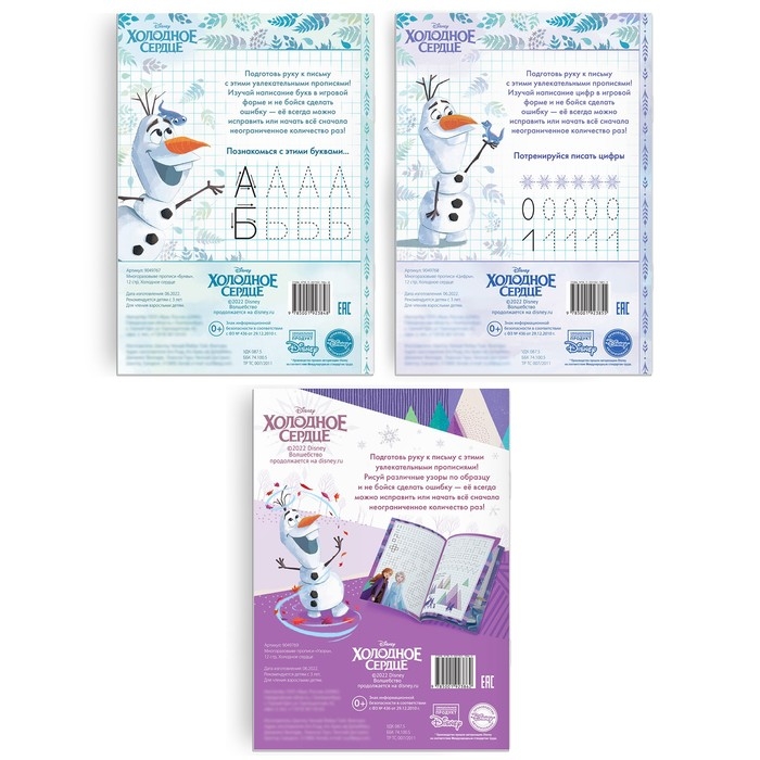 Набор многоразовых прописей «Учимся вместе с Анной и Эльзой», 3 шт. по 12 стр., Холодное сердце