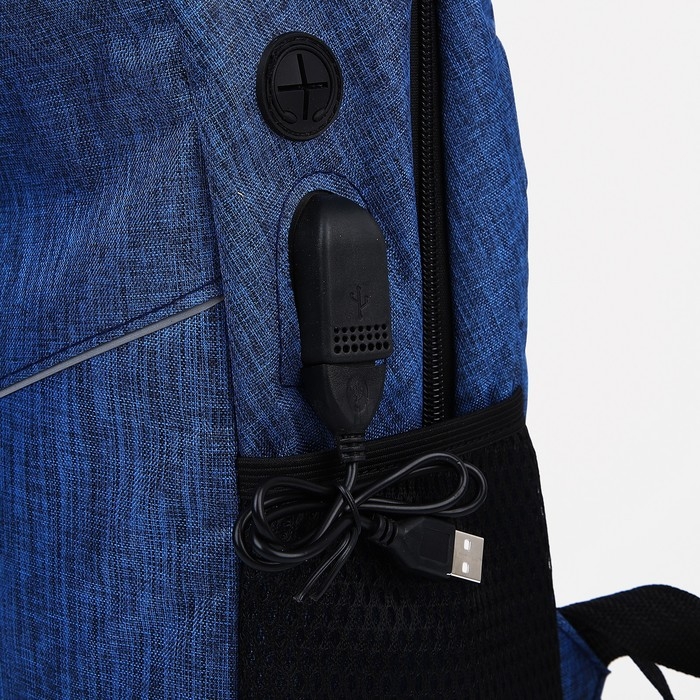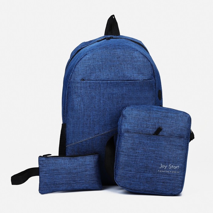 Набор рюкзак школьный на молнии из текстиля с USB, сумка, косметичка, цвет синий