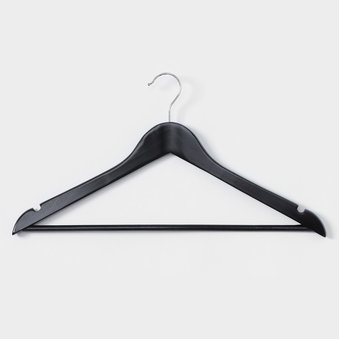 Плечики - вешалки для одежды Доляна, 43×23 см, 3 шт, антискользящая перекладина, цвет чёрный