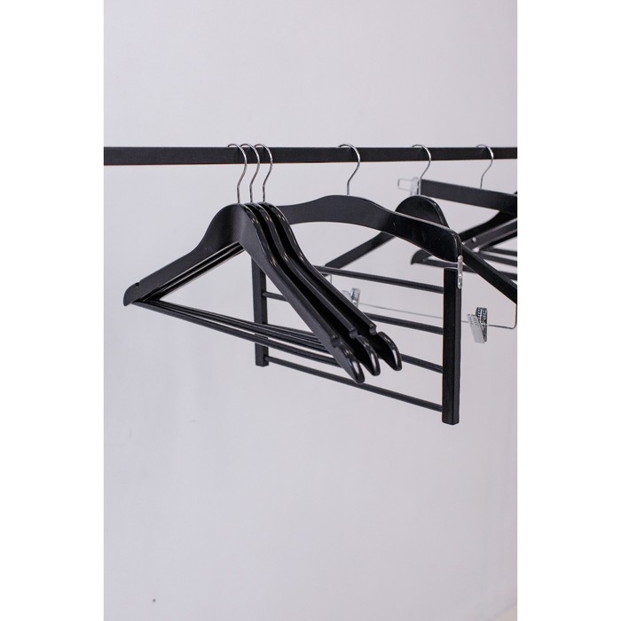 Плечики - вешалки для брюк и юбок Доляна, 45×27 см, 3 шт, с зажимами, деревянные сорт С, широкие плечики