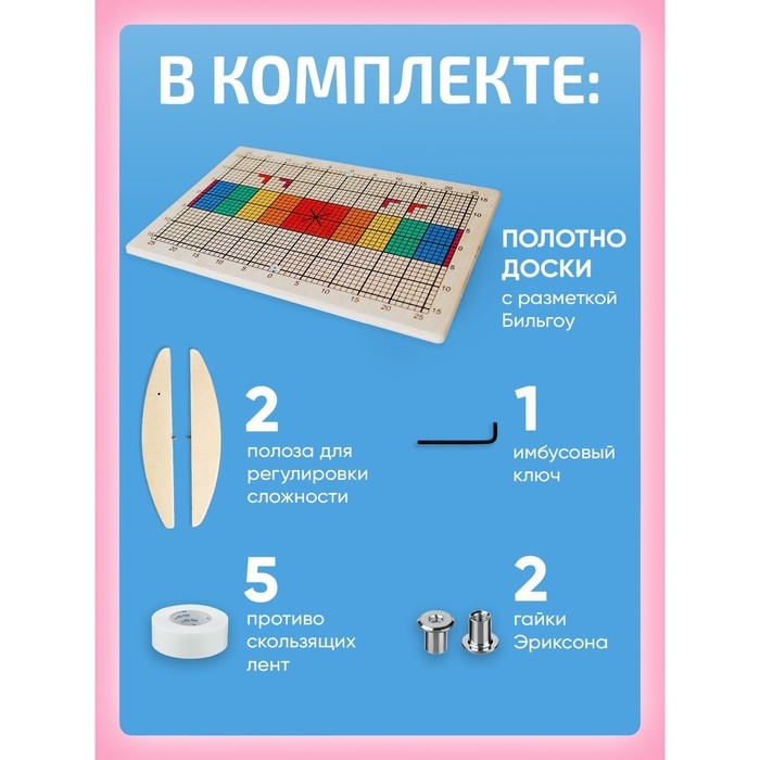 - На верхнюю часть доски нанесена нестираемая наклейка с разметкой. При желании можно наклеить противоскользящую ленту — она есть в комплекте.