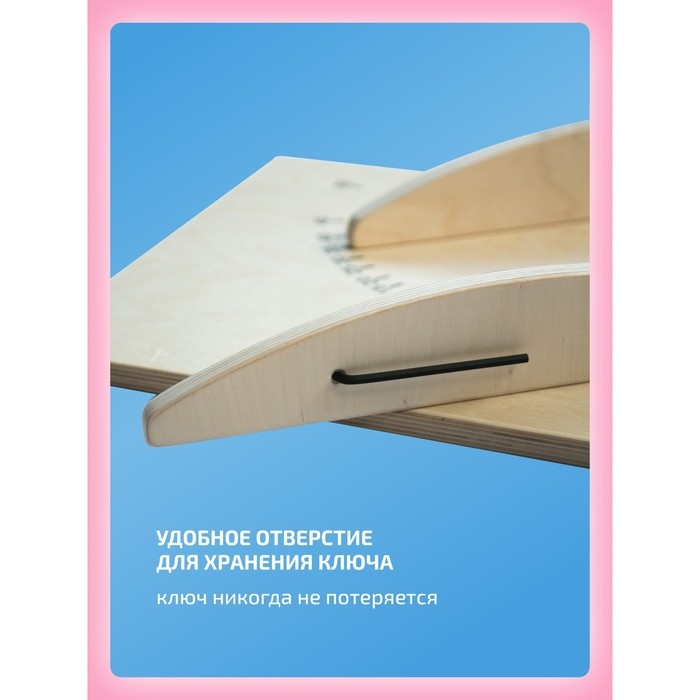 - Балансборд изготовлен из многослойной берёзовой фанеры, оснащён полозьями с регулировкой.