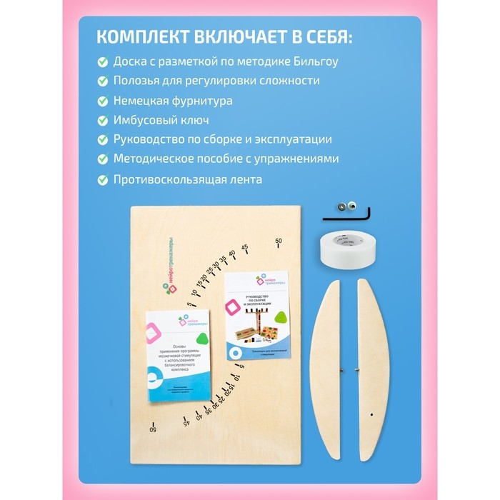 Доска Бильгоу «Мини» — это тренажёр для мозжечковой стимуляции. С его помощью ребёнок учится удерживать равновесие и управлять своим телом. Таким образом занятия с доской активируют все внутренние ресурсы организма.