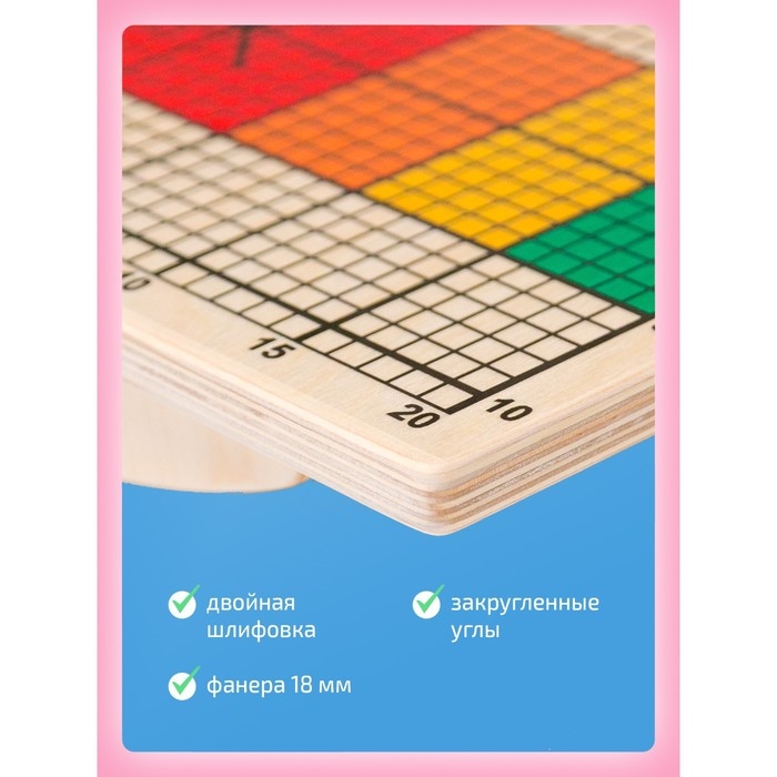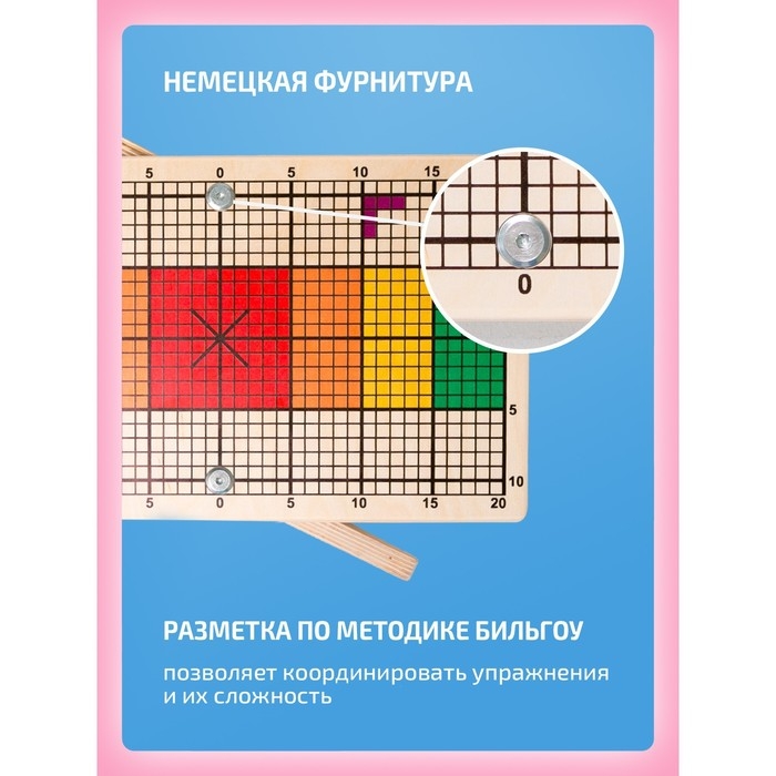 - Разметка из цветных секторов и квадратов, цифровых обозначений помогает контролировать положение ног в упражнениях.