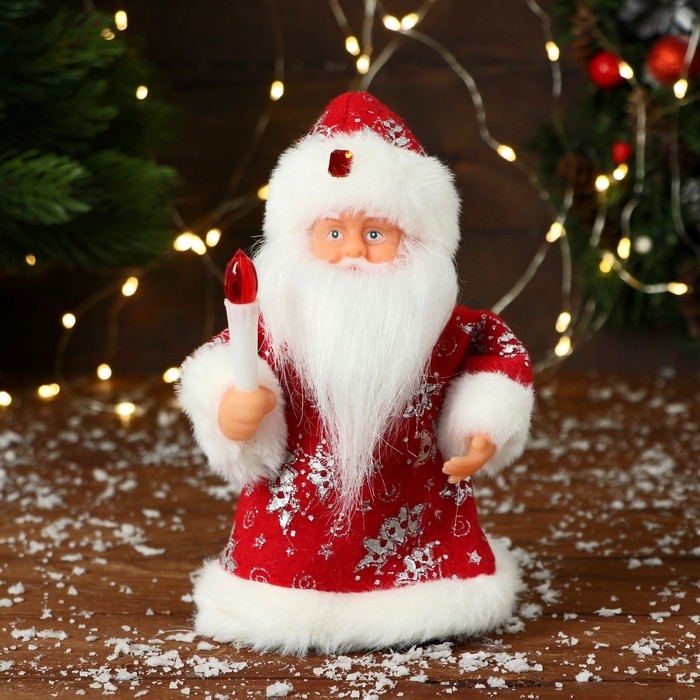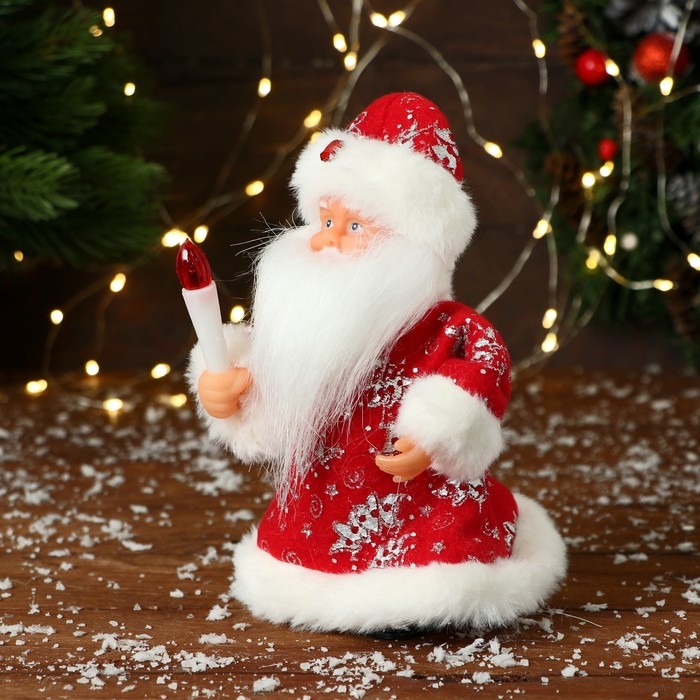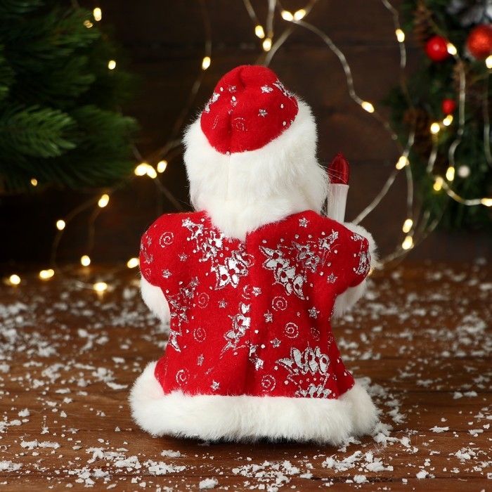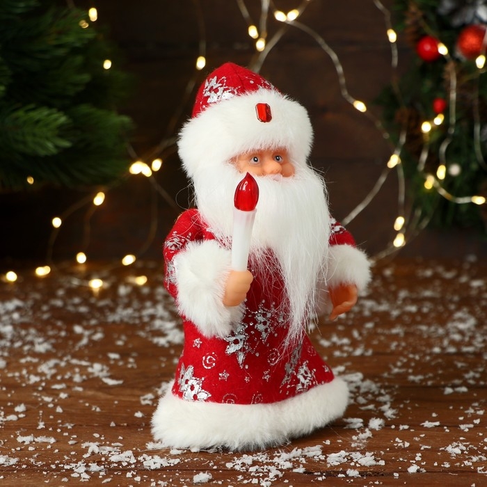 Дед Мороз "В узорчатой шубке с фонариком" 19 см, красный