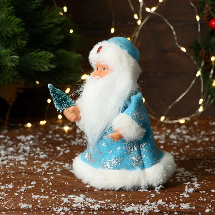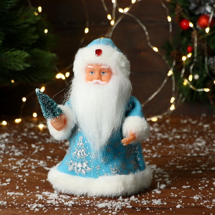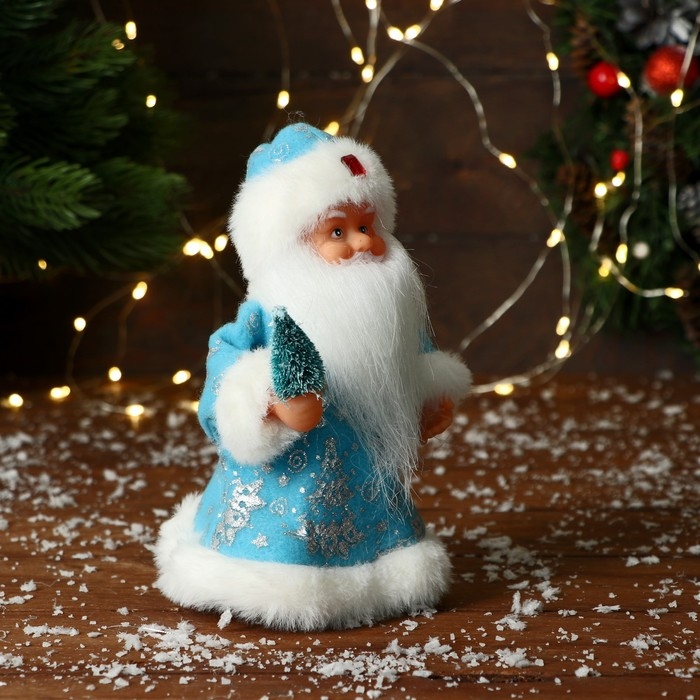 Дед Мороз "В узорчатой шубке с ёлочкой" 19 см, голубой