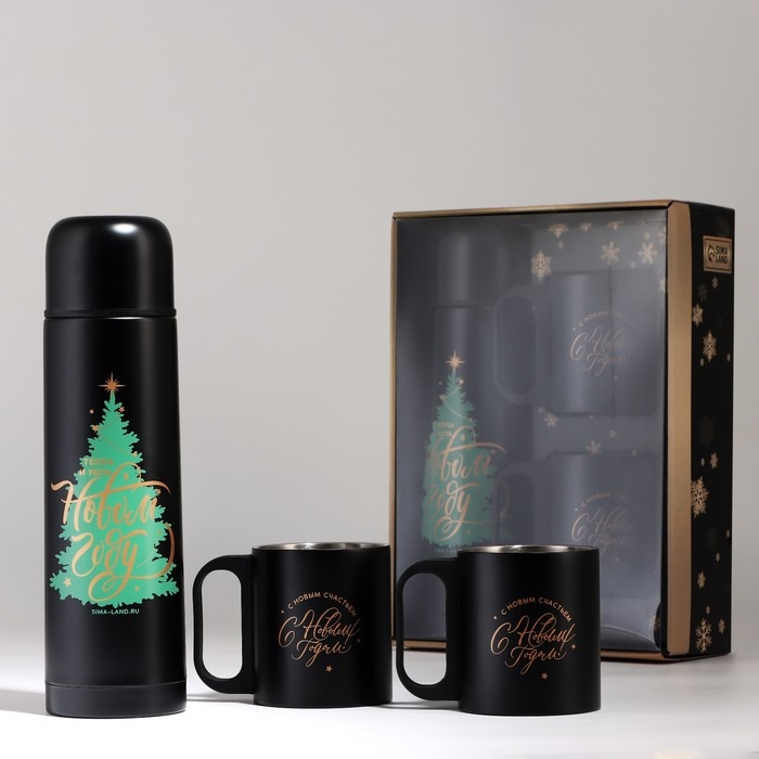 - Две кружки с новогодним дизайном станут прекрасным дополнением к термосу.
