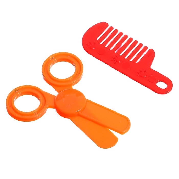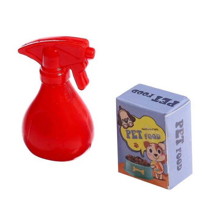- Аксессуары для питомца: домик со столом для груминга, инструменты для груминга, миска, коробка корма (имитация).