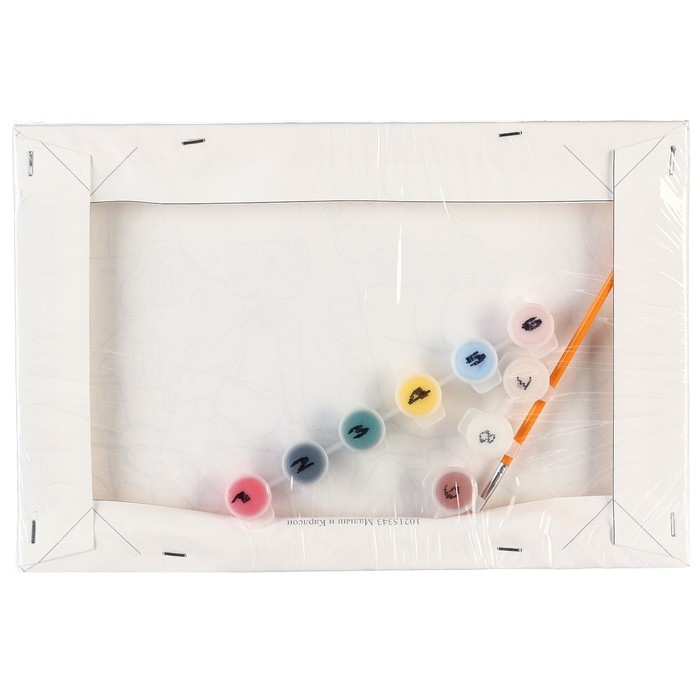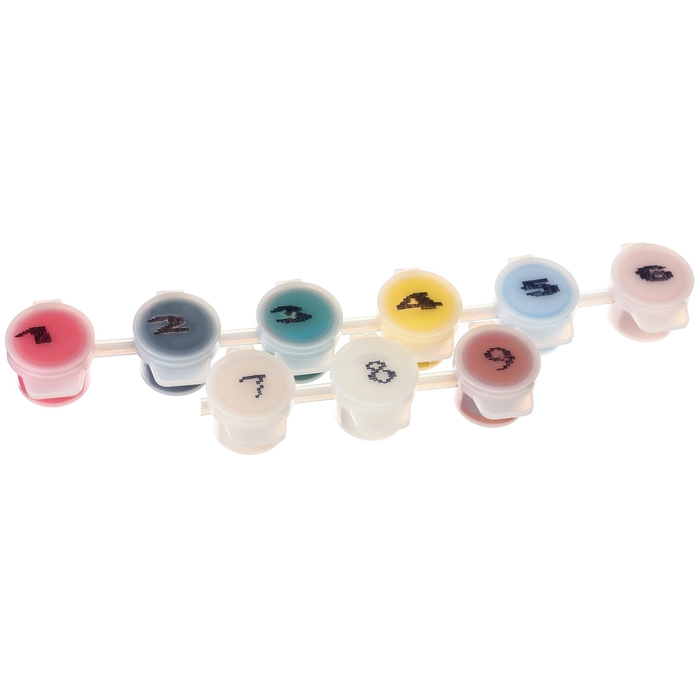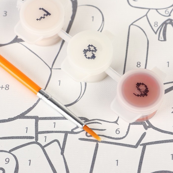 Холст разделён на фрагменты, на каждом из которых указано число, соответствующее цвету, которым нужно закрасить данный участок. В набор входят все необходимые оттенки красок, каждый из которых пронумерован.