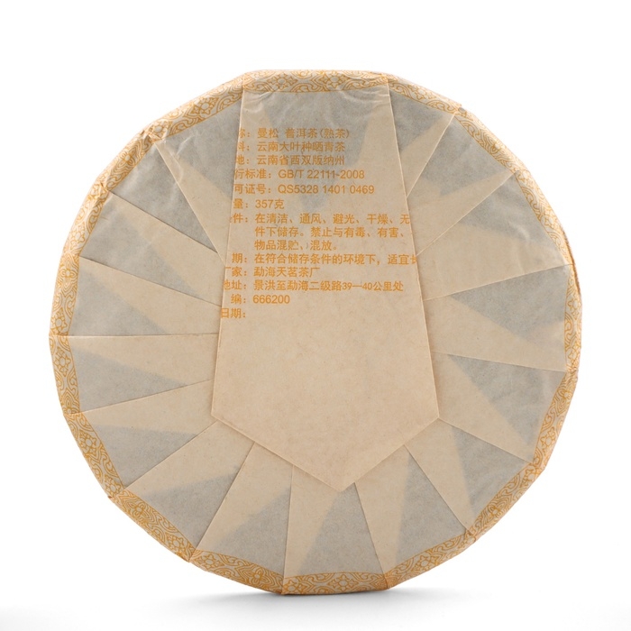 Чай китайский "Шу Пуэр Маньсун", уезд Мэнхай, 2014 г, блин, 357 г