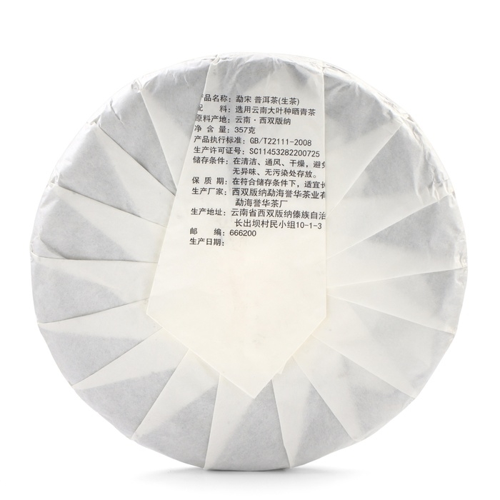 Чай китайский зелёный "Шен Пуэр Мэнсун", уезд Мэнхай, 2022 г, блин, 357 г
