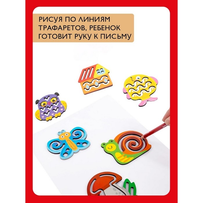 - Создавайте с помощью трафаретов композиции и раскрашивайте их!