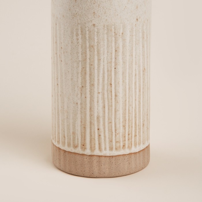 Бутылка выполнена из прочной керамики, что обеспечивает долговечность и устойчивость к повреждениям. Бежевый цвет и отсутствие рисунка придают изделию универсальность, позволяя гармонично вписаться в любой интерьер — от классического до современного. Высота 26 см и диаметр 7 см делают её компактной и удобной в использовании.