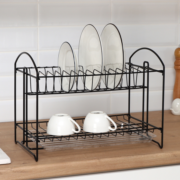 Сушилка для посуды с поддоном 2-х ярусная, разборная, 39,5×24×29,5 см, цвет черный