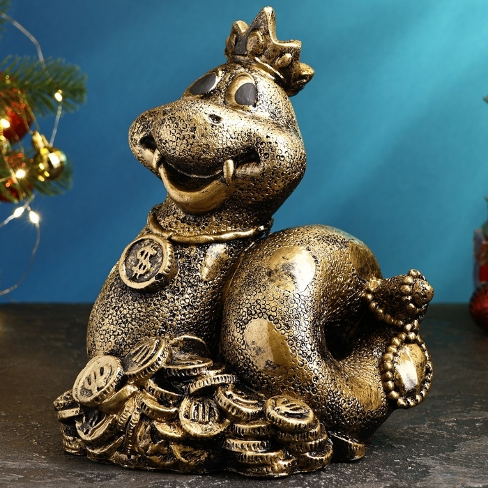 Копилка "Змея Королева" черное золото, 25х23х18см
