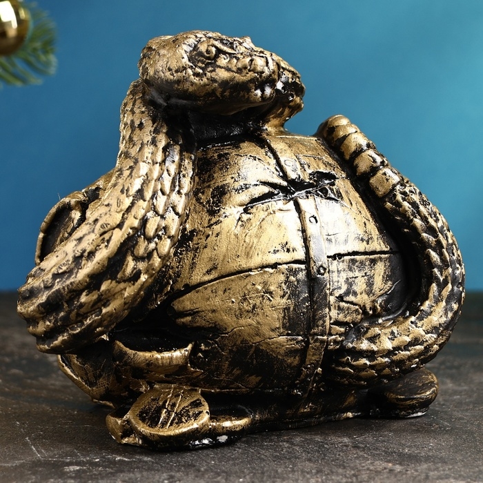 Копилка "Змея с бочкой" малая золото, 14х19х12см