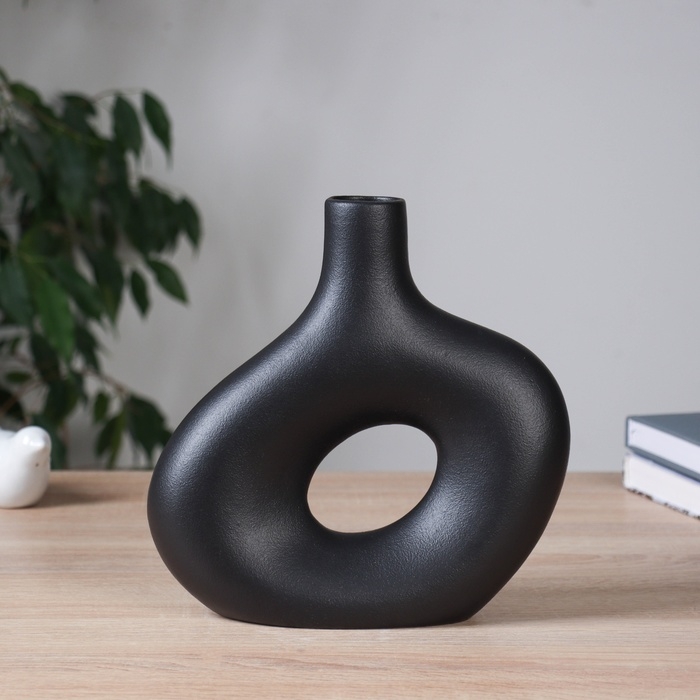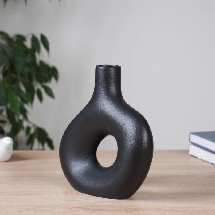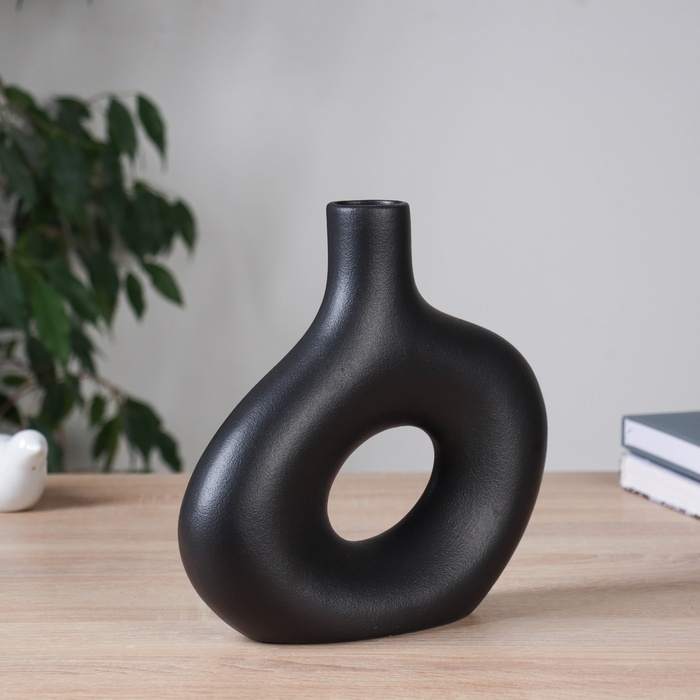 Ваза керамика настольная "Отто" овал, d-4см, 23х22 см, чёрный