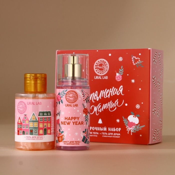 Подарочный набор косметики новогодний «Исполнения желаний», гель для душа 100 мл и мист для тела 75 мл, Новый Год