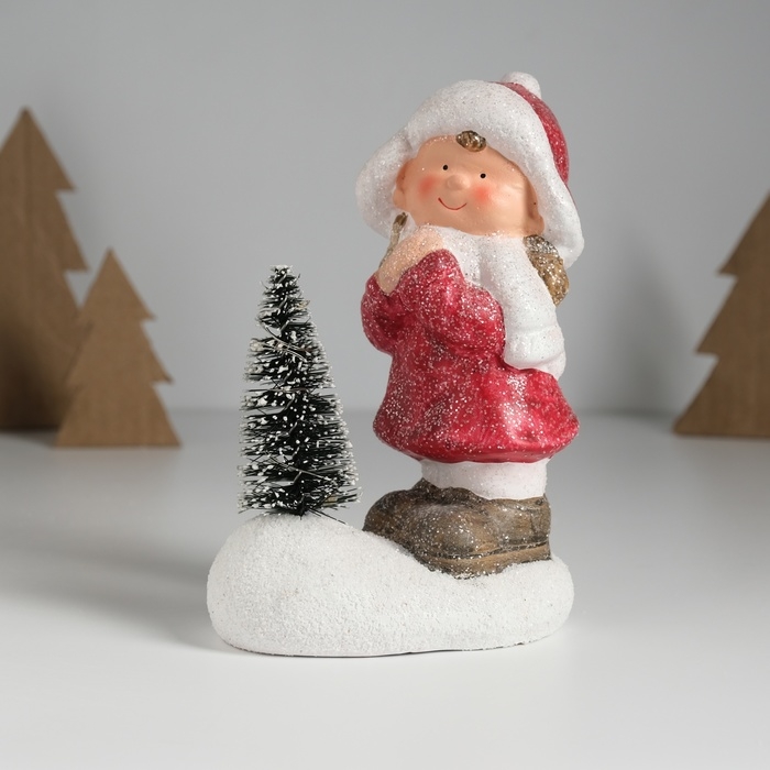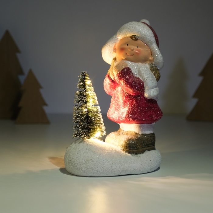 Сувенир керамика свет "Малышка в красном платьице у ёлочки" 11,7х7х16 см
