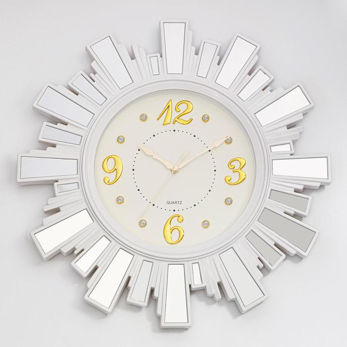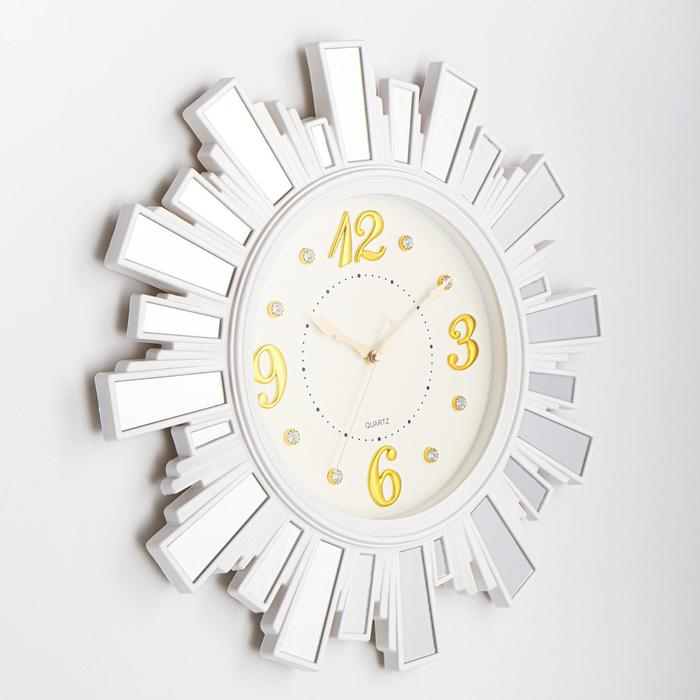 Часы настенные, серия: Интерьер, "Лучики Солнца", плавный ход, с зеркалом, d-53 см, белые