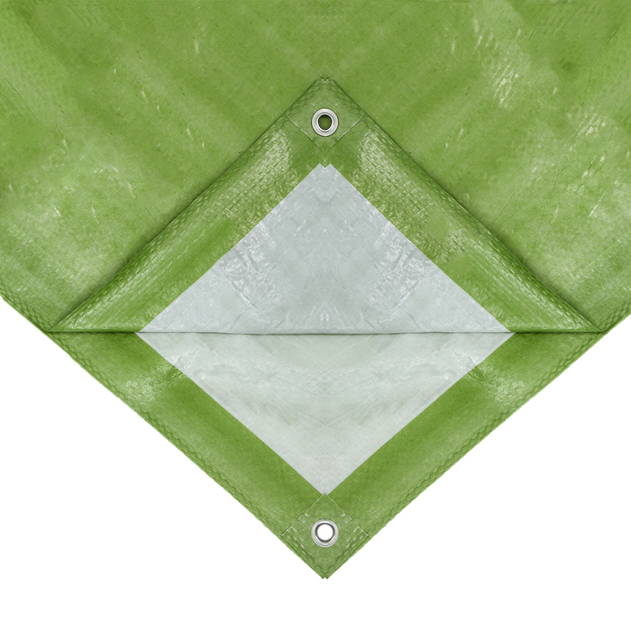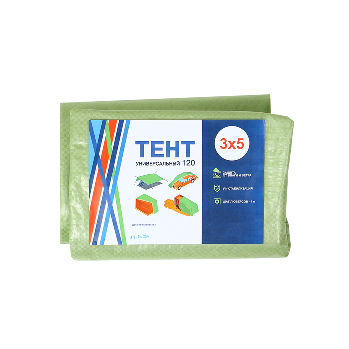 Тент защитный, 5 × 3 м, плотность 120 г/м², УФ, люверсы шаг 1 м, зелёный/серебристый