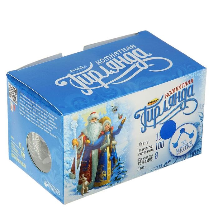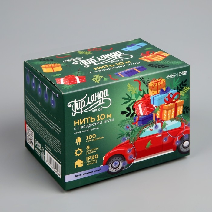 Гирлянда «Нить» 10 м с насадками «Игла», IP20, прозрачная нить, 100 LED, свечение синее, 8 режимов, 220 В