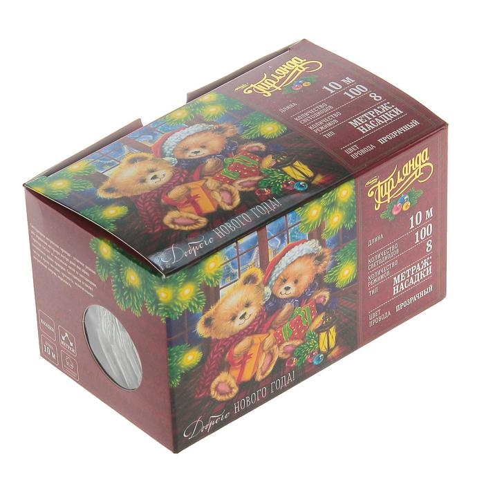 Гирлянда «Нить» 5 м с насадками «Подарки», IP20, прозрачная нить, 20 LED, свечение мульти (RG/RB), мигание, 220 В