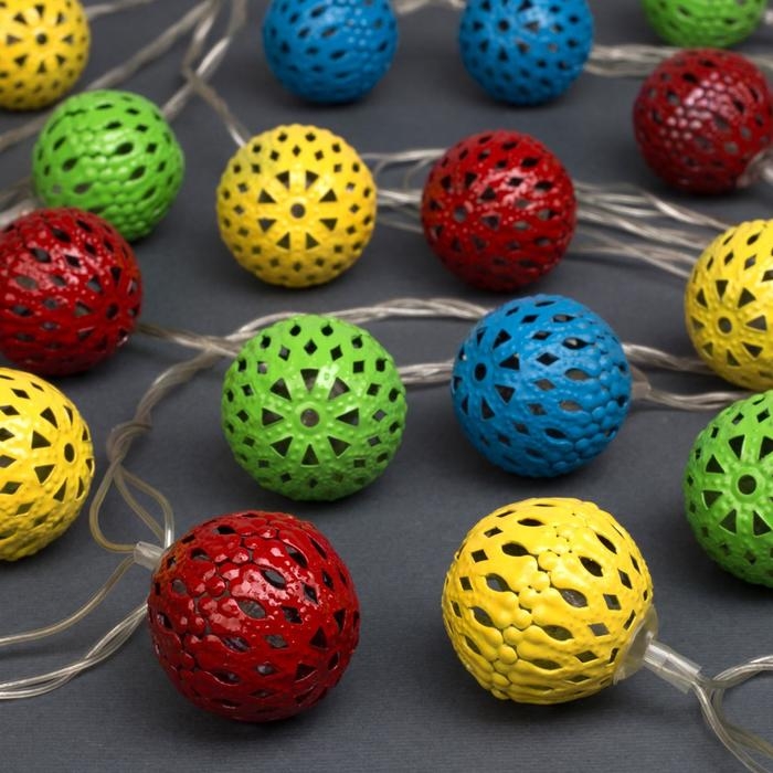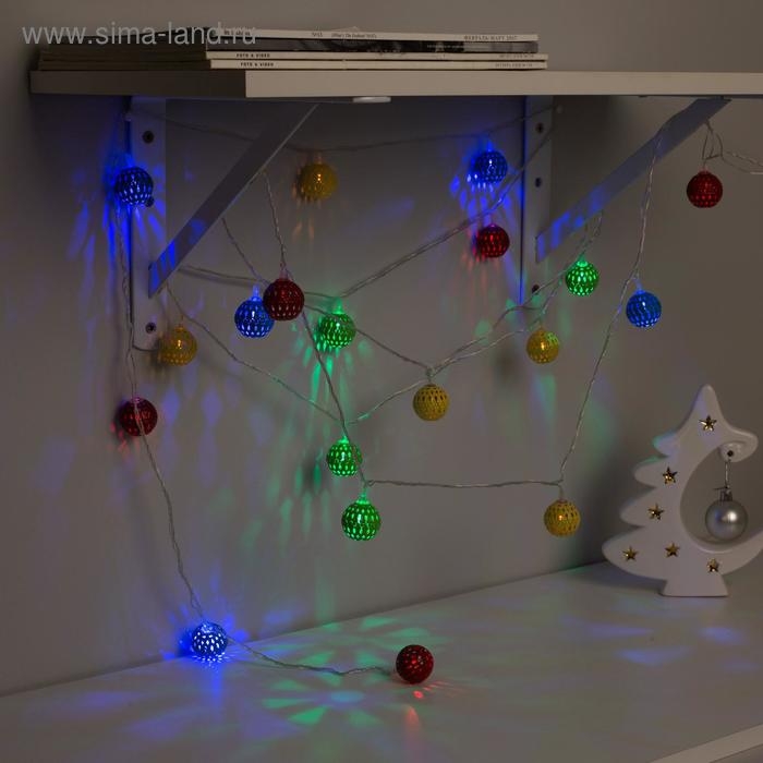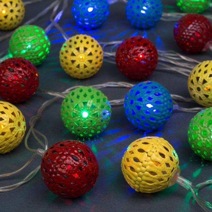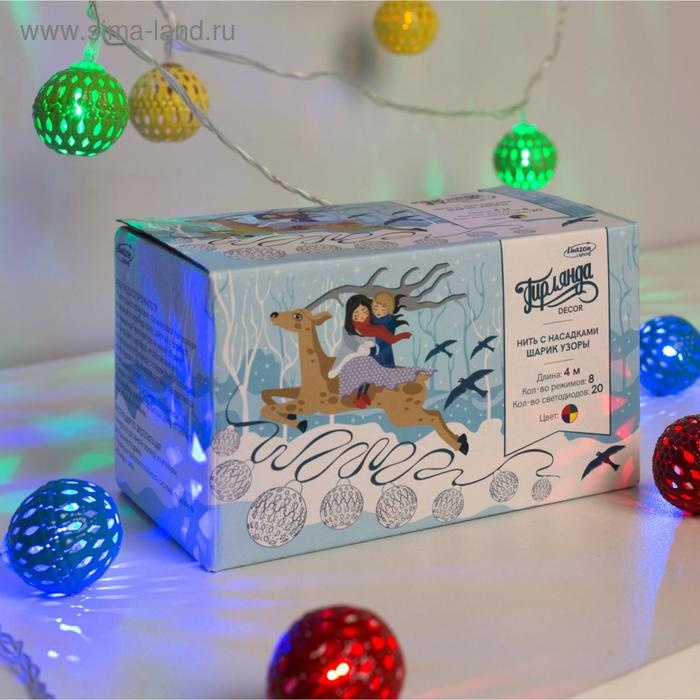 Гирлянда «Нить» 4 м с насадками «Шарик с узором», IP20, прозрачная нить, 20 LED, свечение мульти, 8 режимов, 220 В