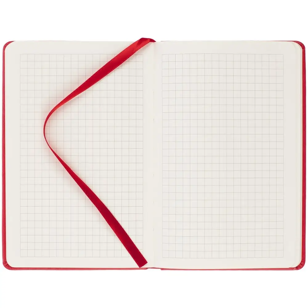 Твердая обложка из материала Latte, красный, ляссе в цвет обложки.