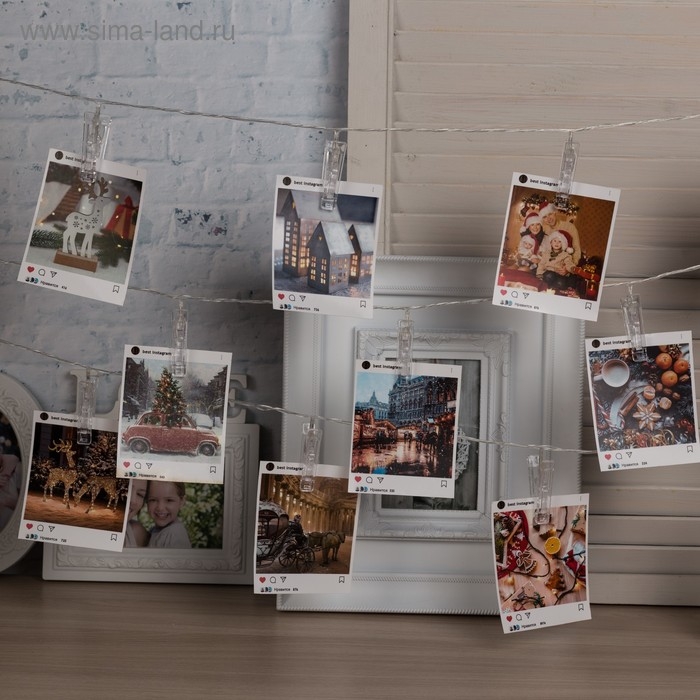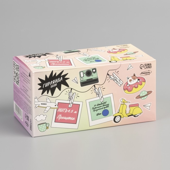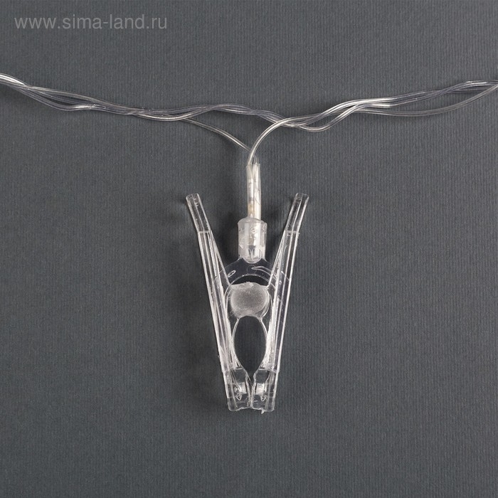 Гирлянда «Нить» 4.5 м с насадками «Прищепки», IP20, прозрачная нить, 20 LED, свечение синее, 220 В