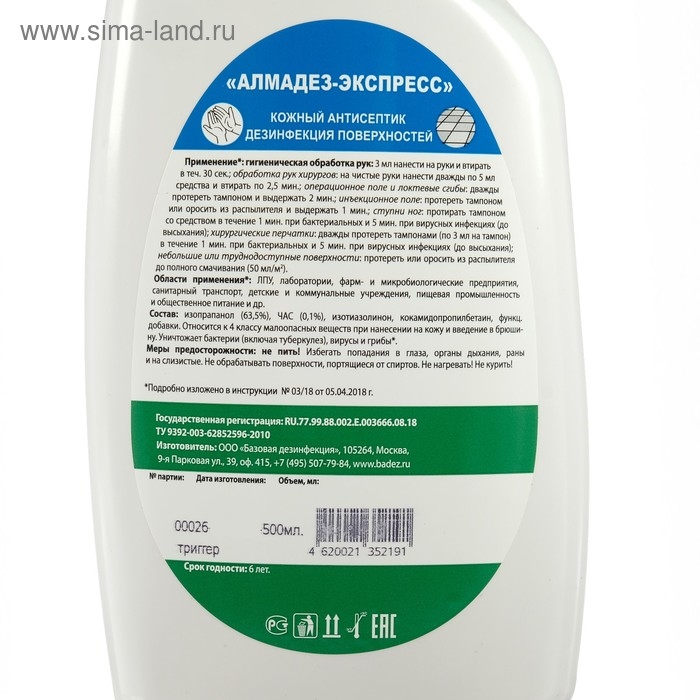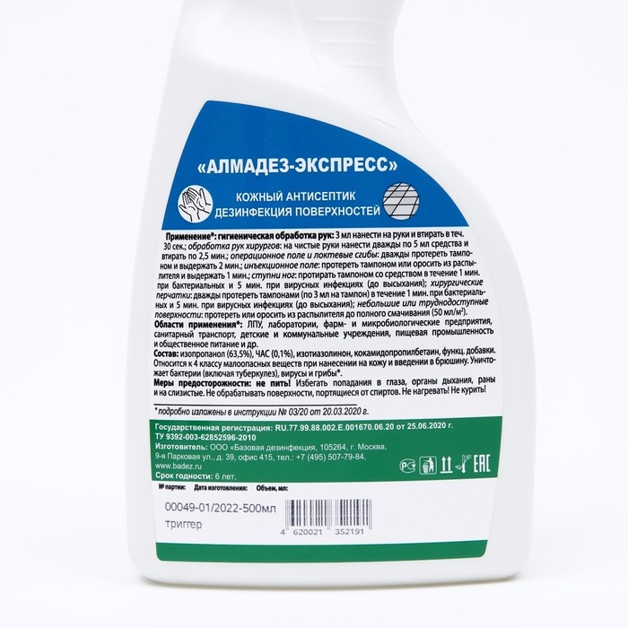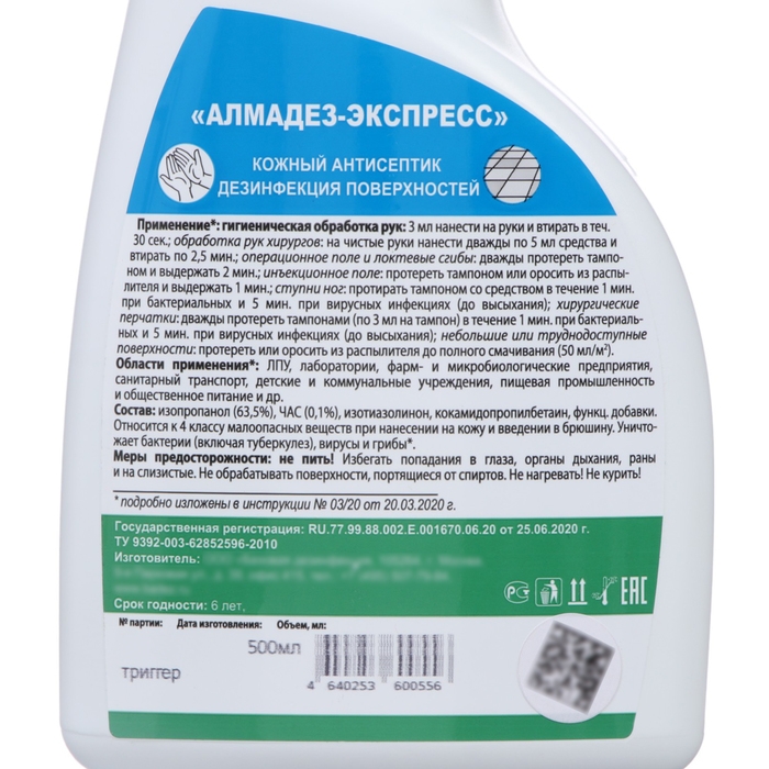 Антисептик "Алмадез-Экспресс", кожный, дезинфекция поверхностей, 500 мл