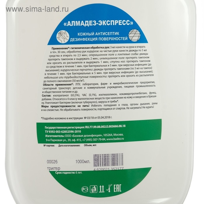 Антисептик "Алмадез-Экспресс", кожный, дезинфекция поверхностей, 500 мл