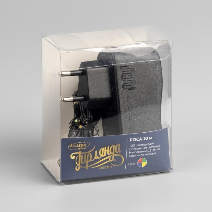 Гирлянда «Нить» 10 м роса, IP20, чёрная нить, 100 LED, свечение мульти, 12 В